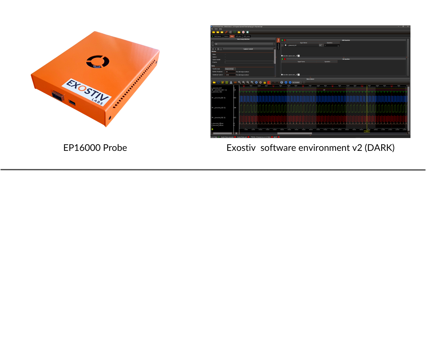 Software environment | Environment v2 (DARK) – Exostiv Core Inserter – Exostiv Probe Client – Myriad, Ocean, Fusion | Environment v2 (DARK) – Exostiv Core Inserter – Exostiv Probe Client – Myriad, Ocean, Fusion |